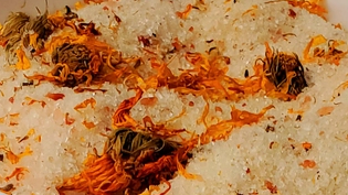 🛁 Skin-softening salts + beautiful botanical accents